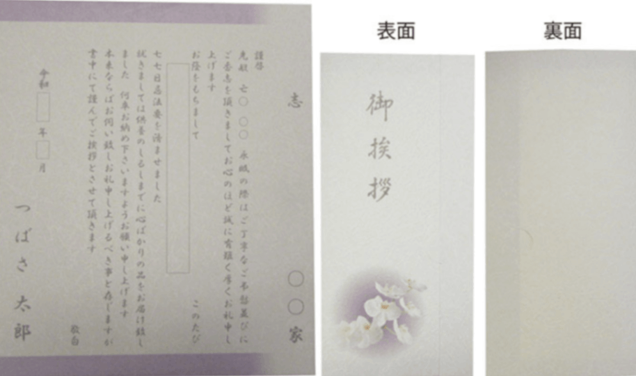 挨拶状は大切なお名前・戒名などが入りますので専任スタッフまでに電話または、メールにてお問合せください。